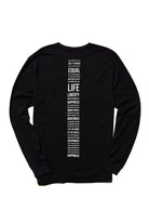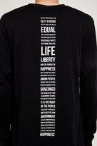 Back design features typographic screen of the opening to the Declaration of Independence updated to extend it's guarantees to "all Americans".