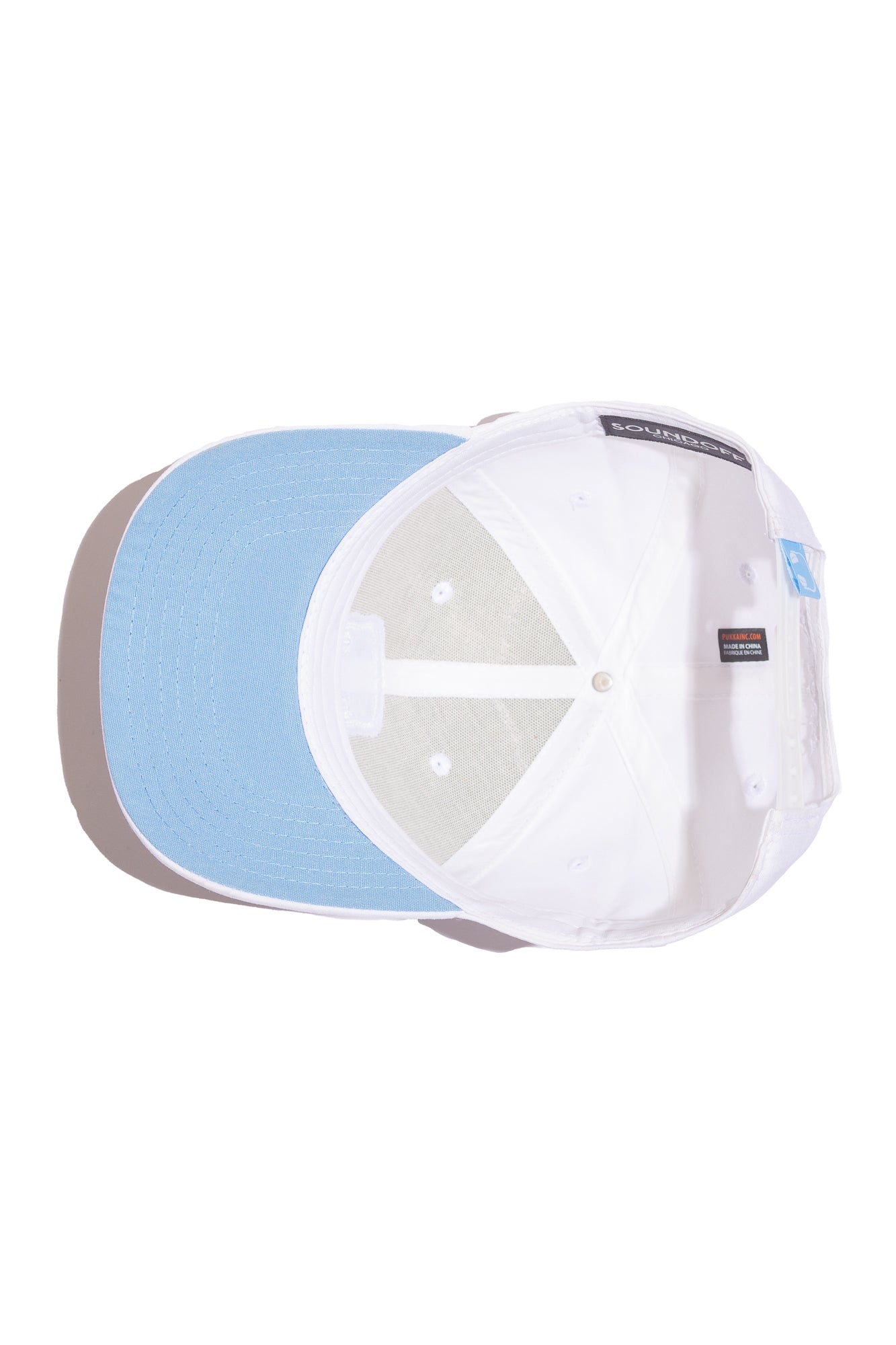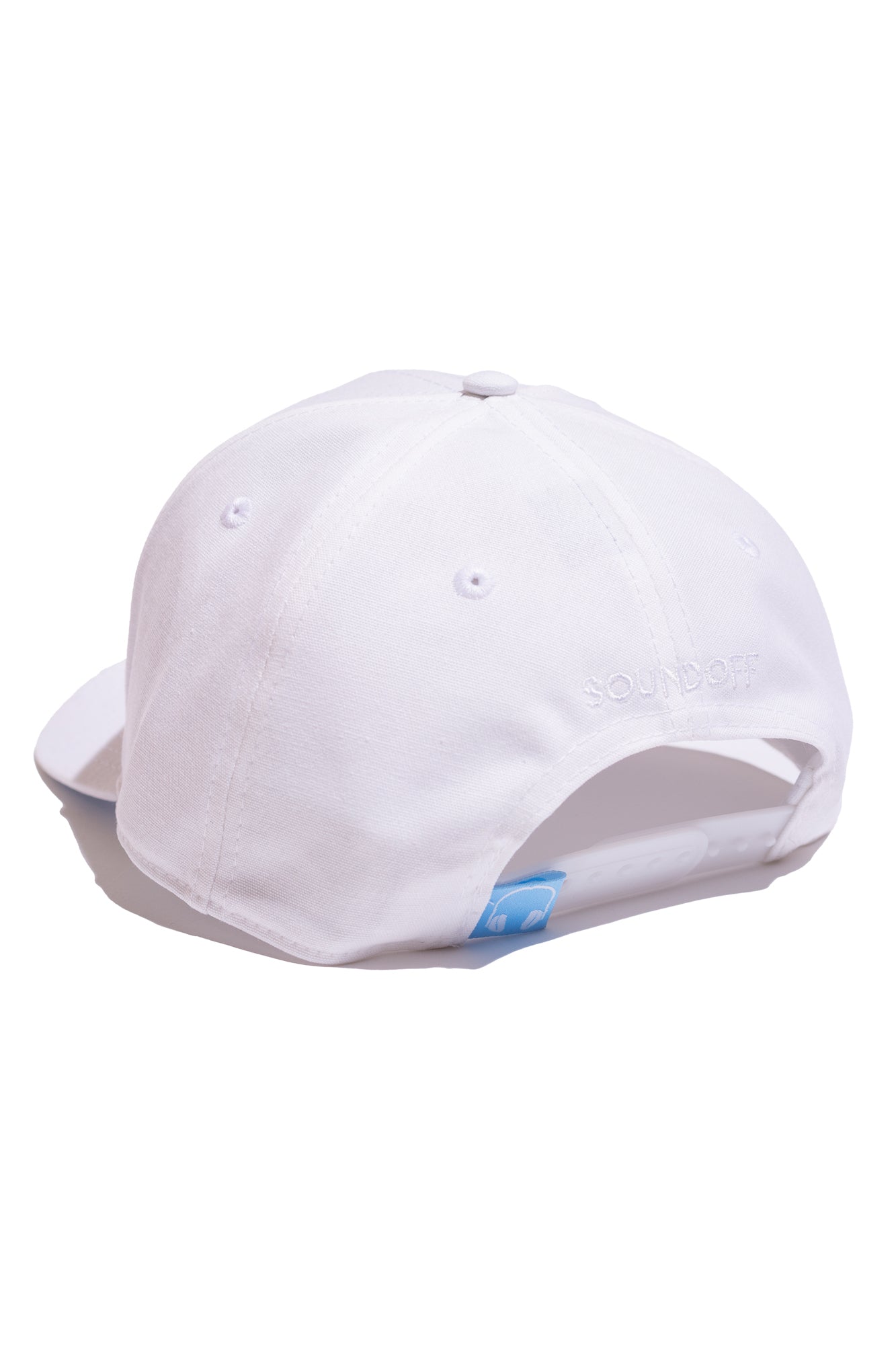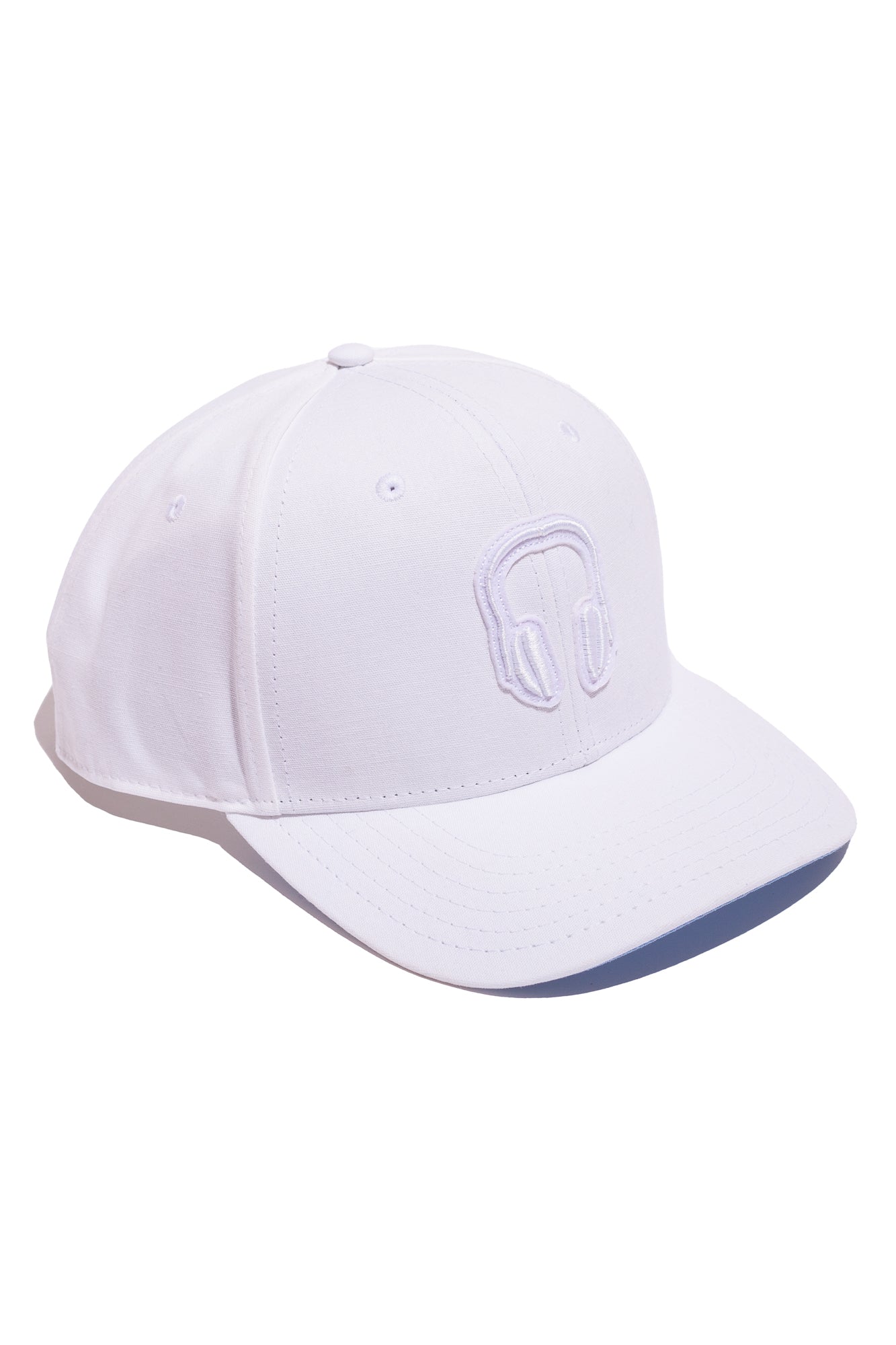 WHITE/CAROLINA BLUE ORGANIC CANVAS SNAPBACK; WHITE HEADPHONES