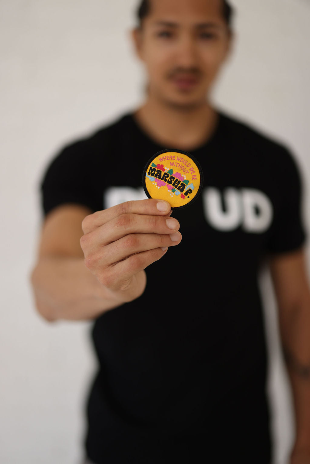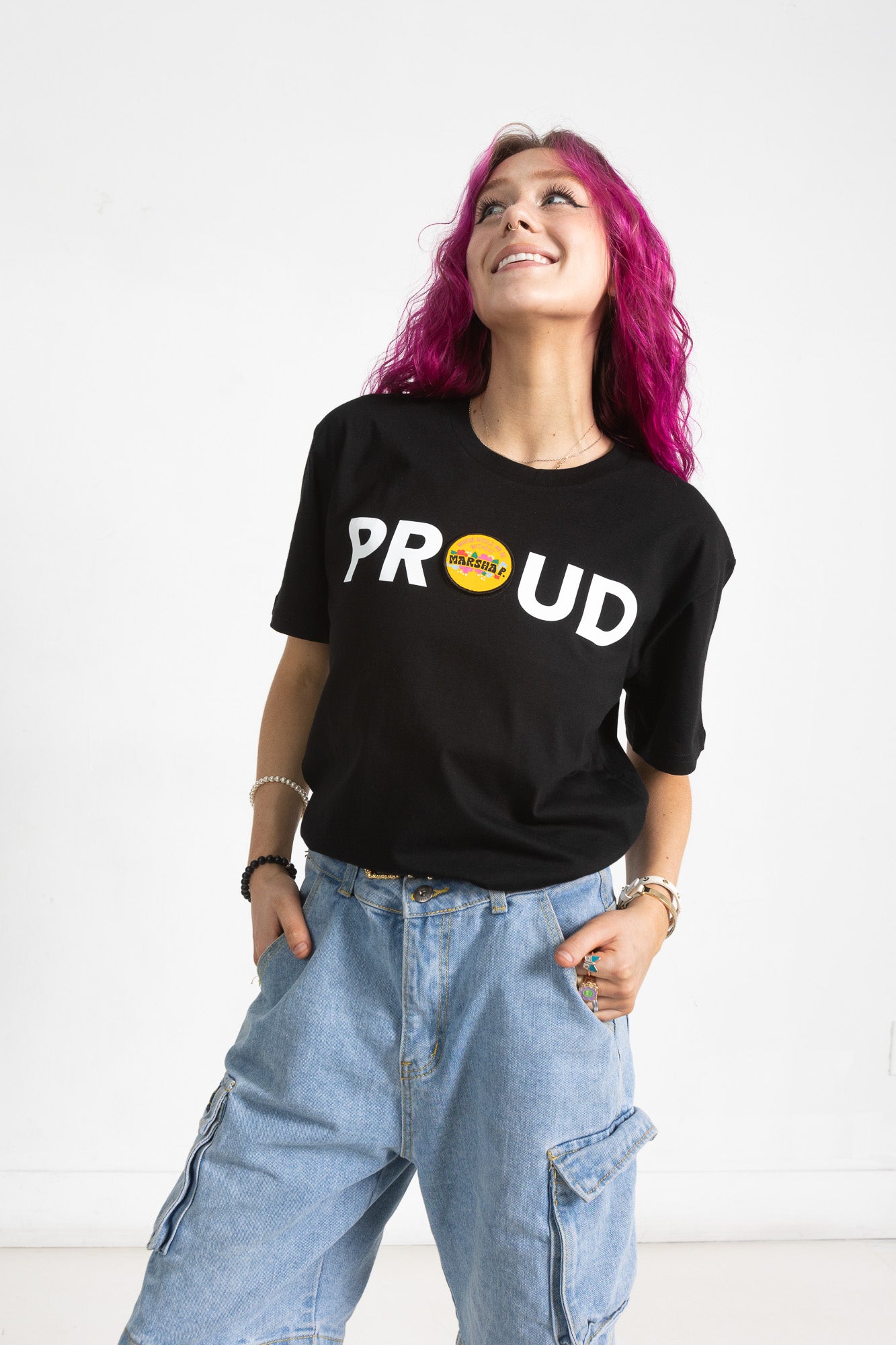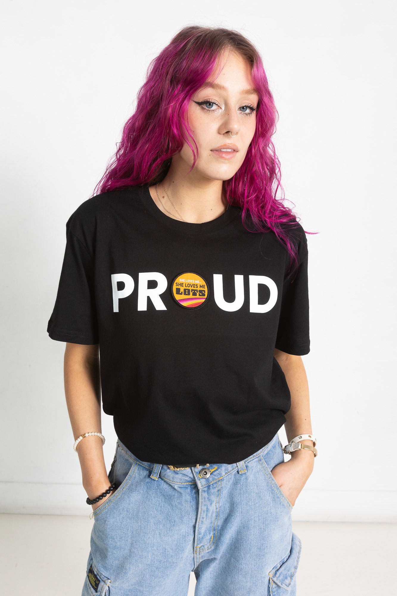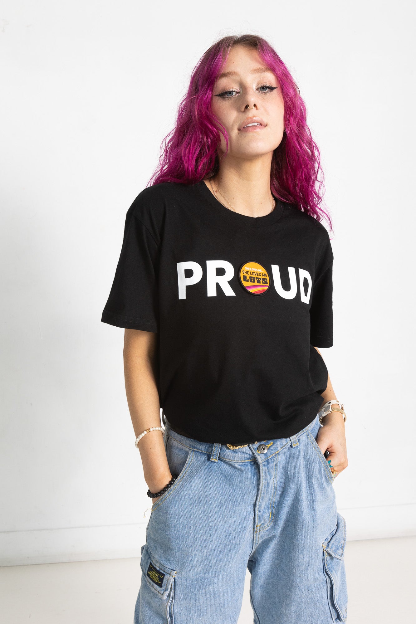 PROUD DECAL PATCH T-SHIRT; BLACK