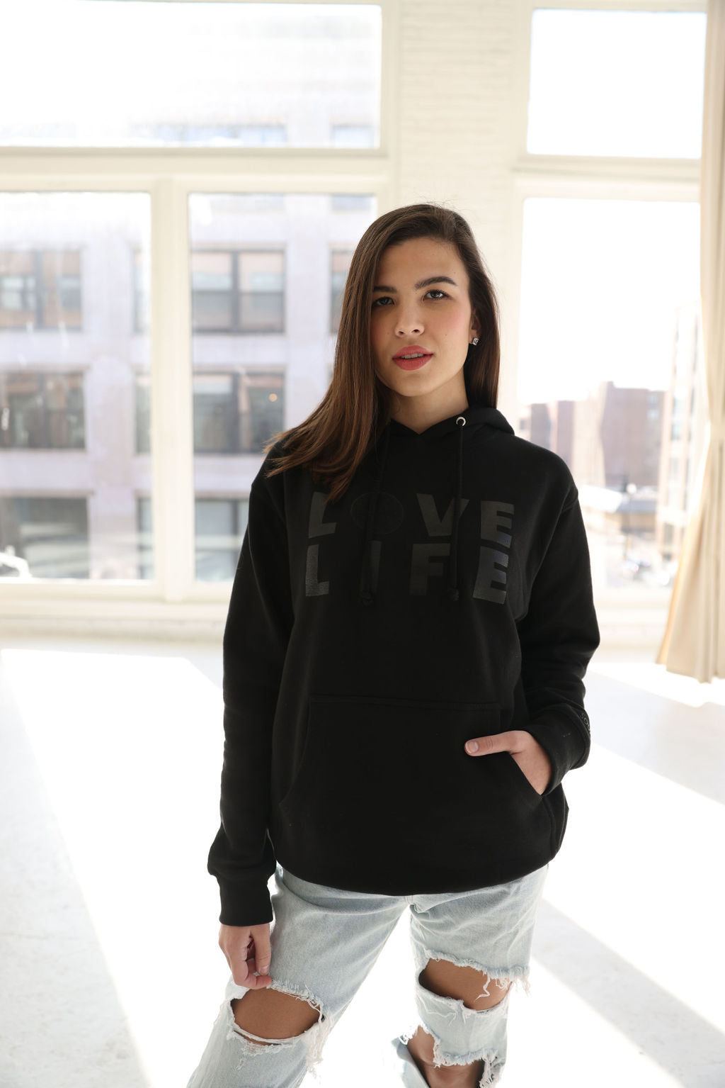 LOVE LIFE HEAVYWEIGHT HOODIE; BLACK