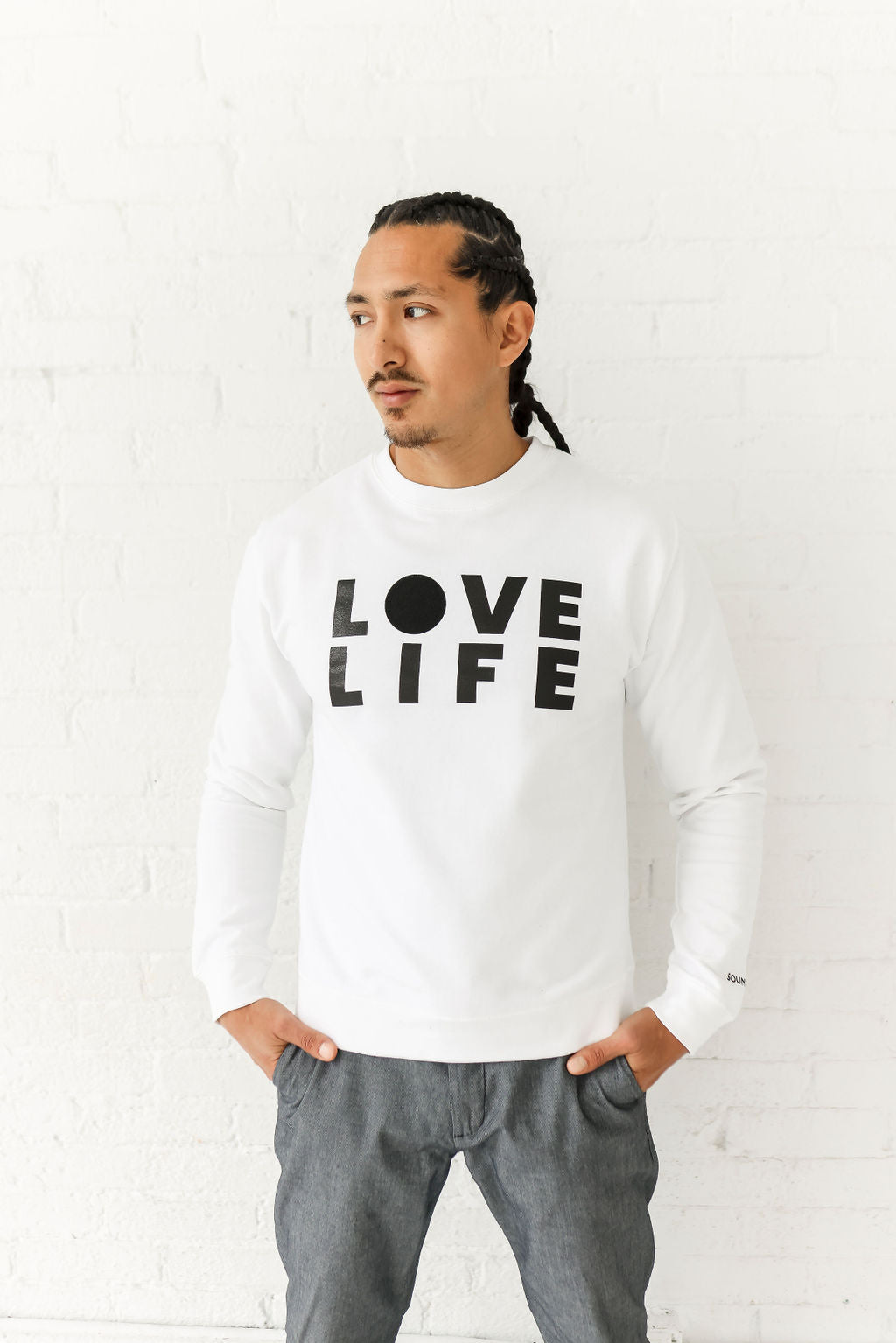 LOVE LIFE MIDWEIGHT CREWNECK SWEATSHIRT; WHITE