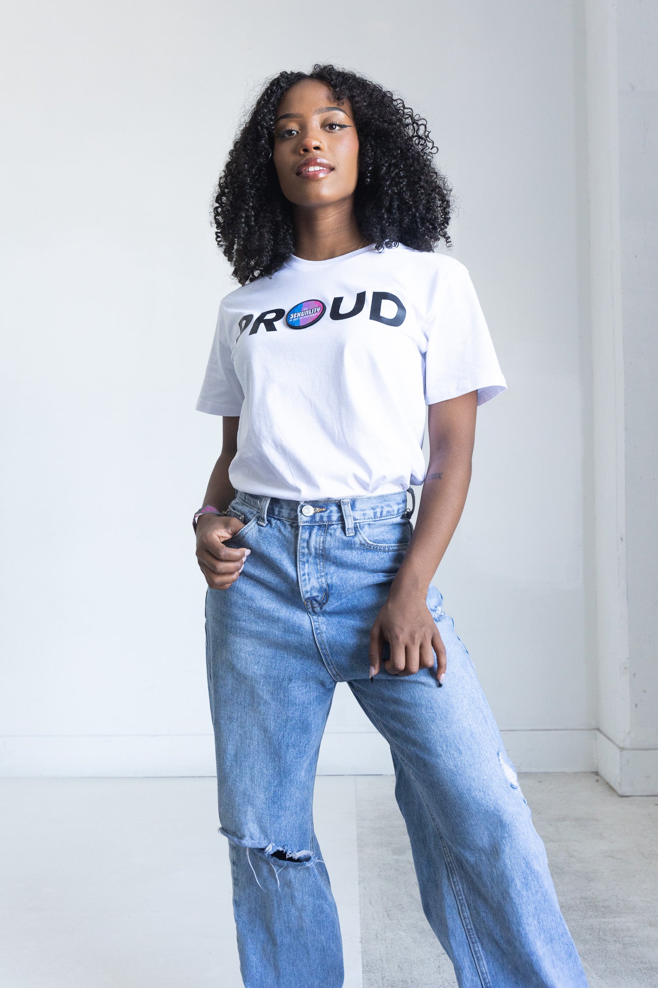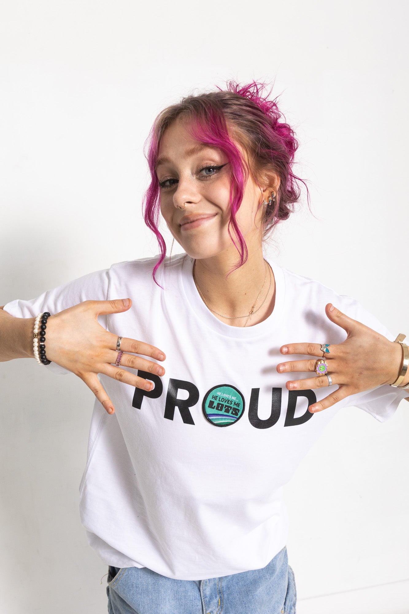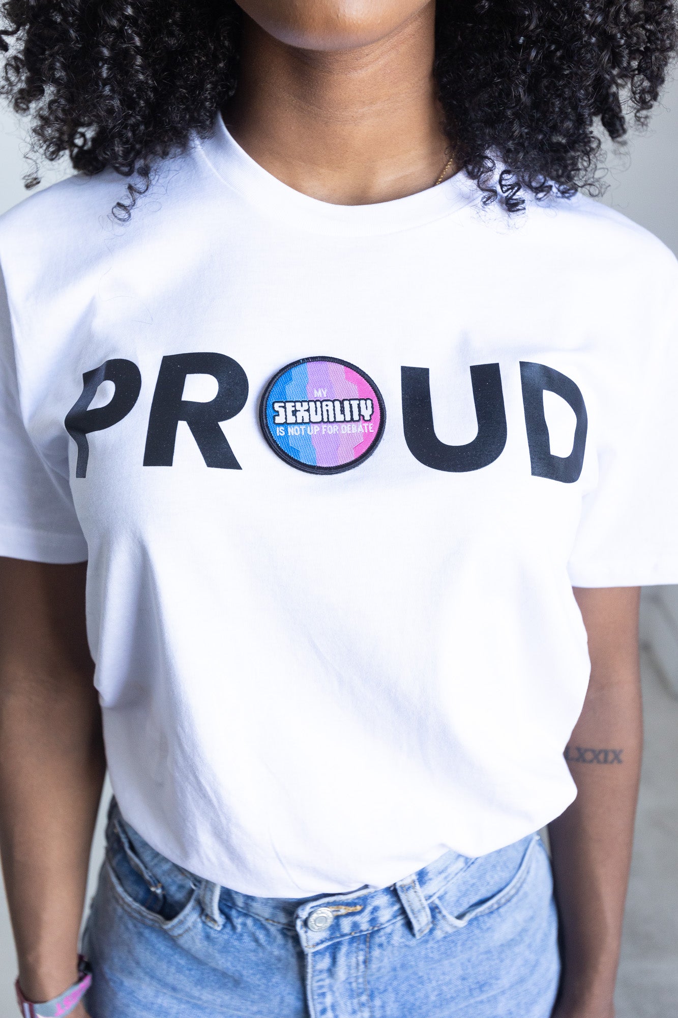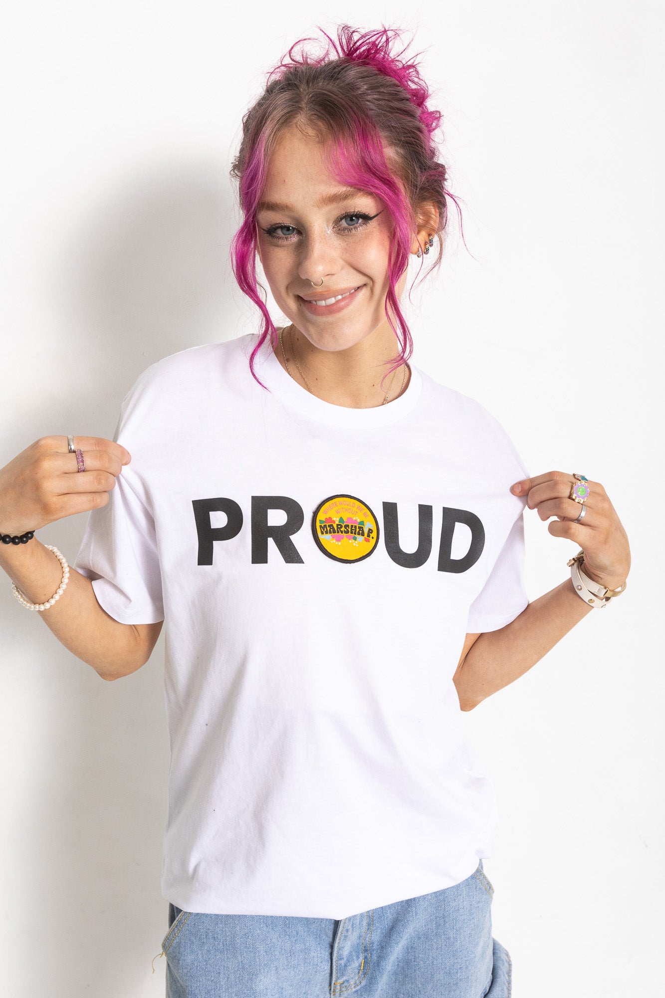 PROUD DECAL PATCH T-SHIRT; WHITE