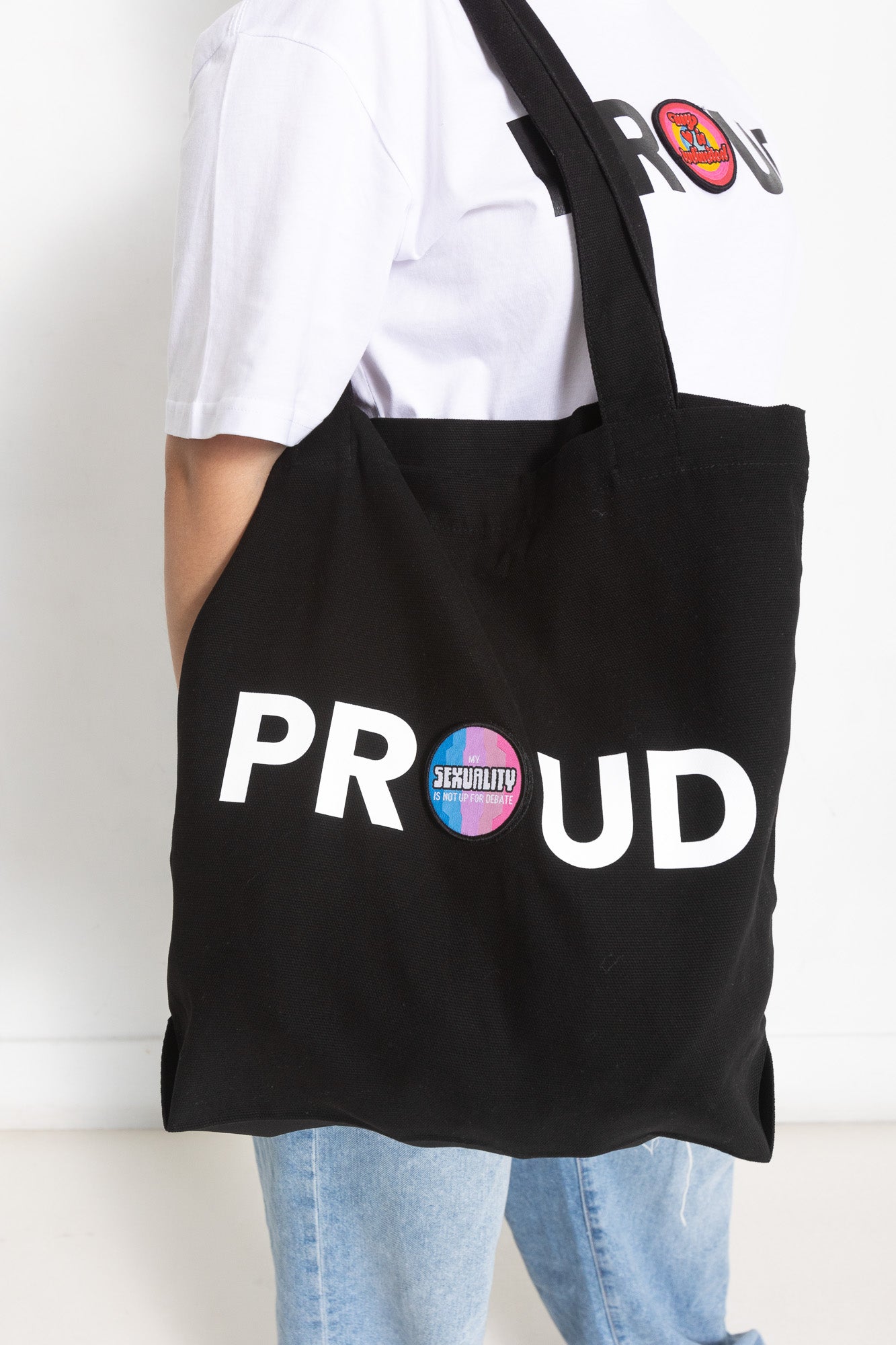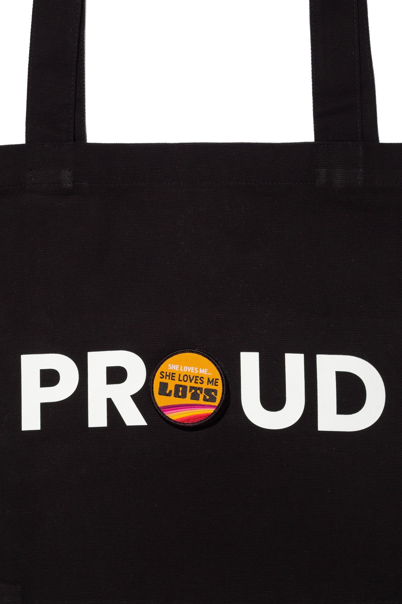 PROUD DECAL PATCH CANVAS TOTE; BLACK