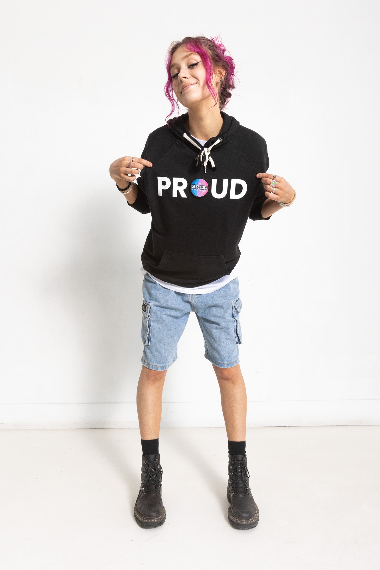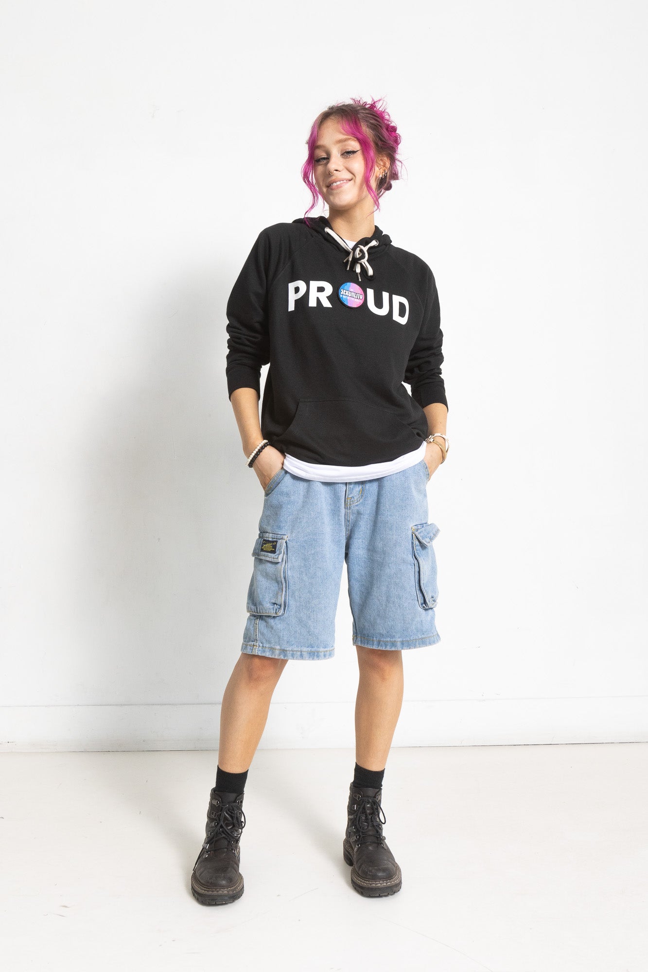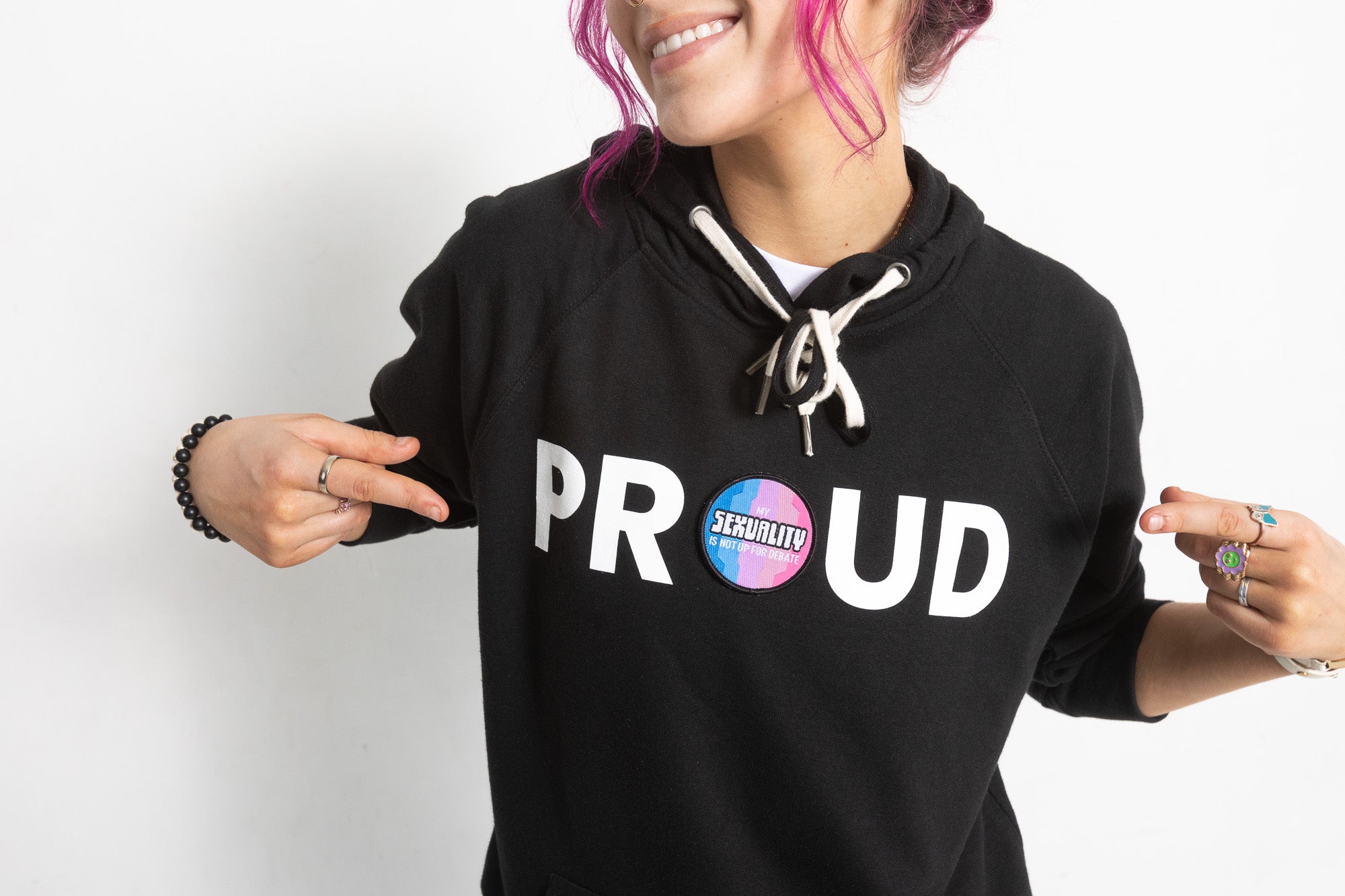 PROUD PATCH & WEAR HOODED PULLOVER; BLACK