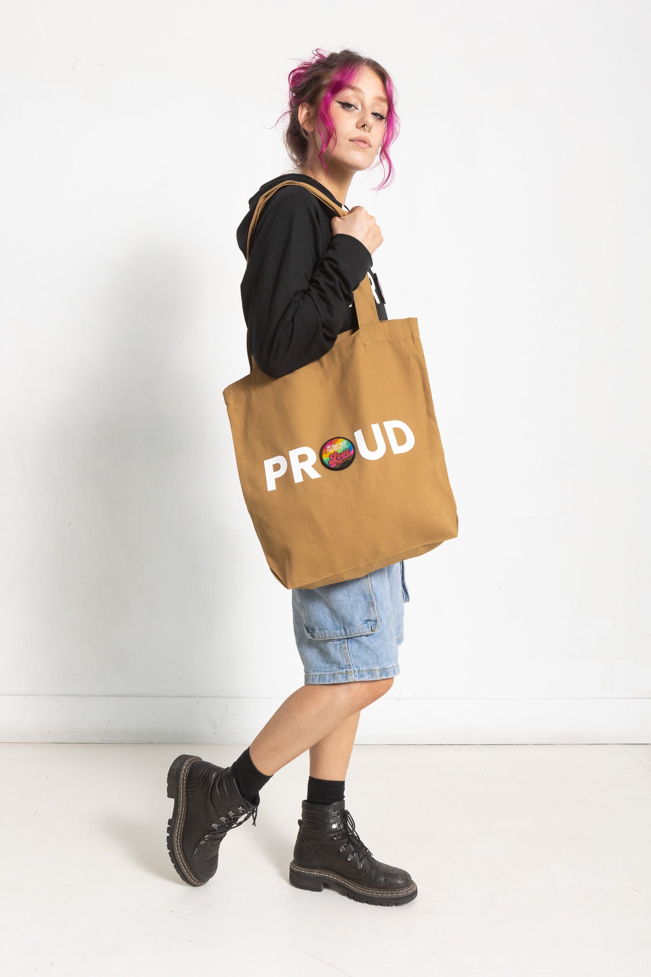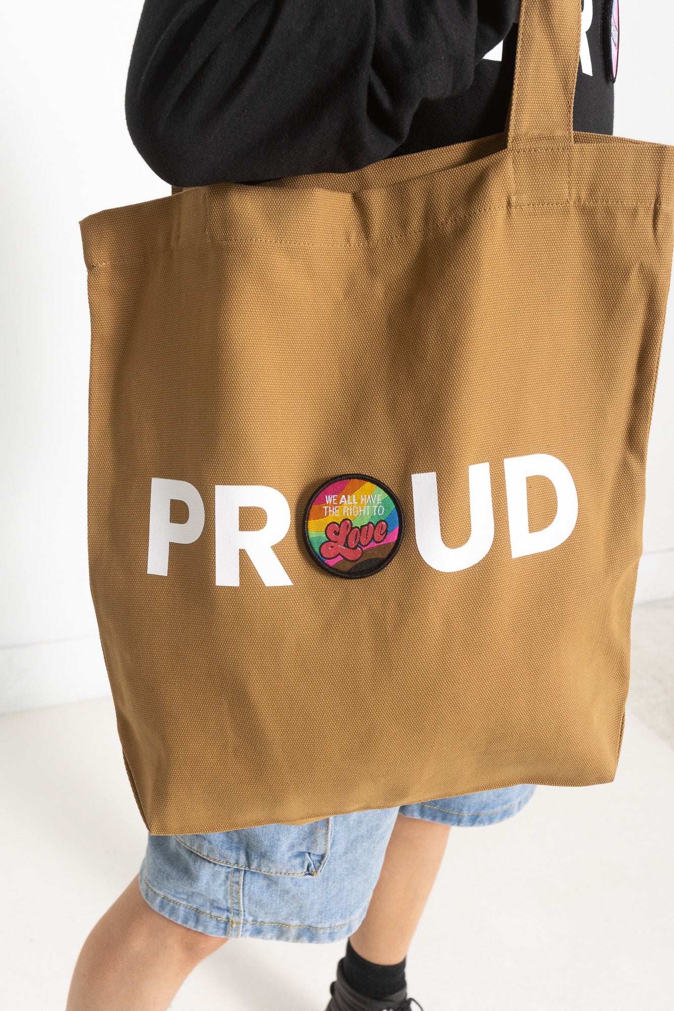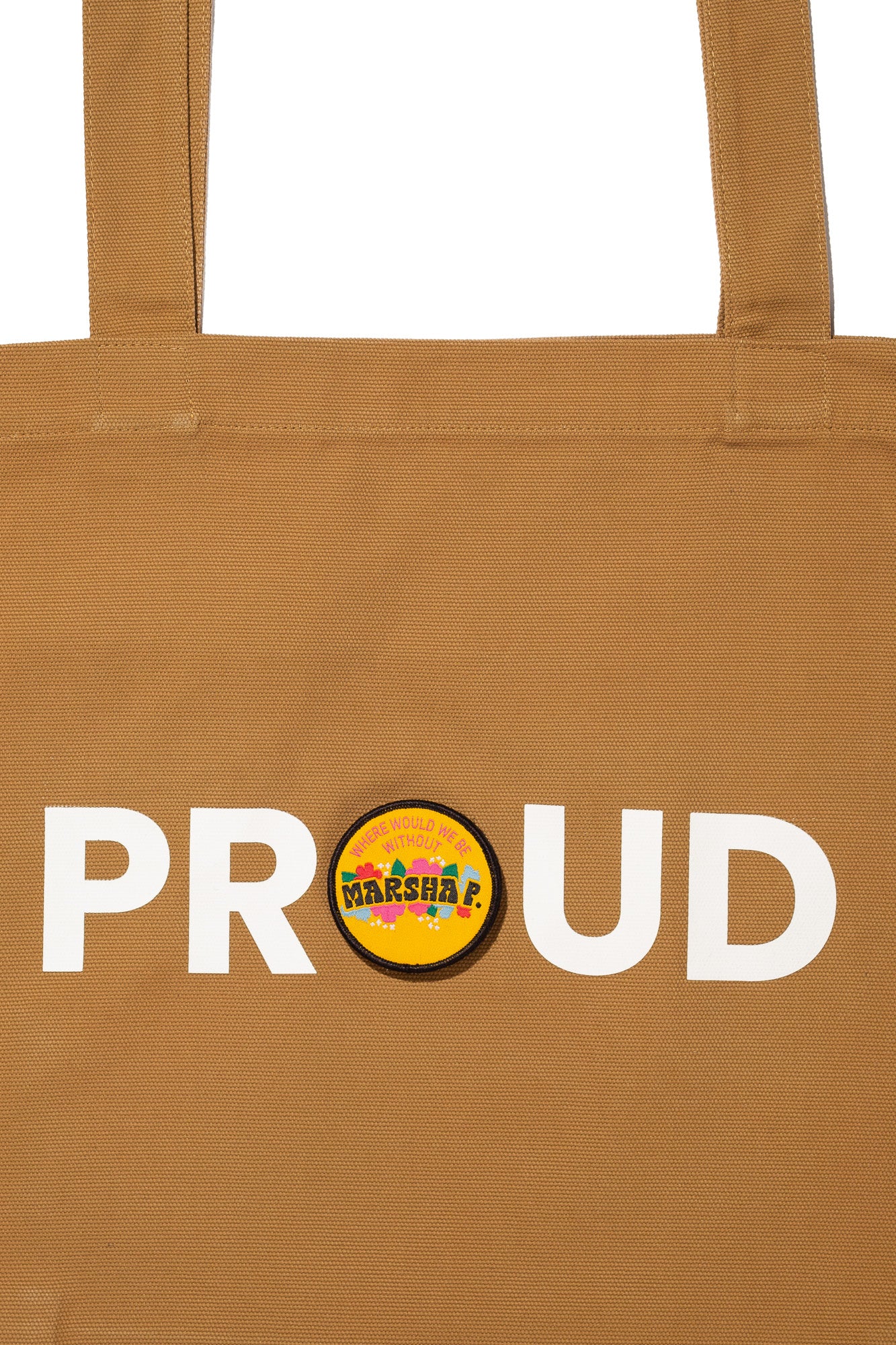 PROUD DECAL PATCH CANVAS TOTE; CAMEL (LIMITED RUN)