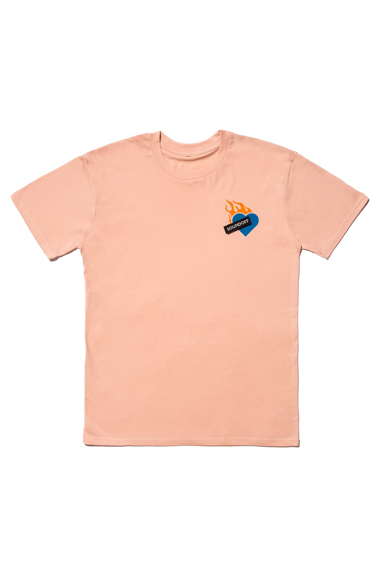 HEART ON FIRE ID PATCH CREW T-SHIRT; PALE PINK
