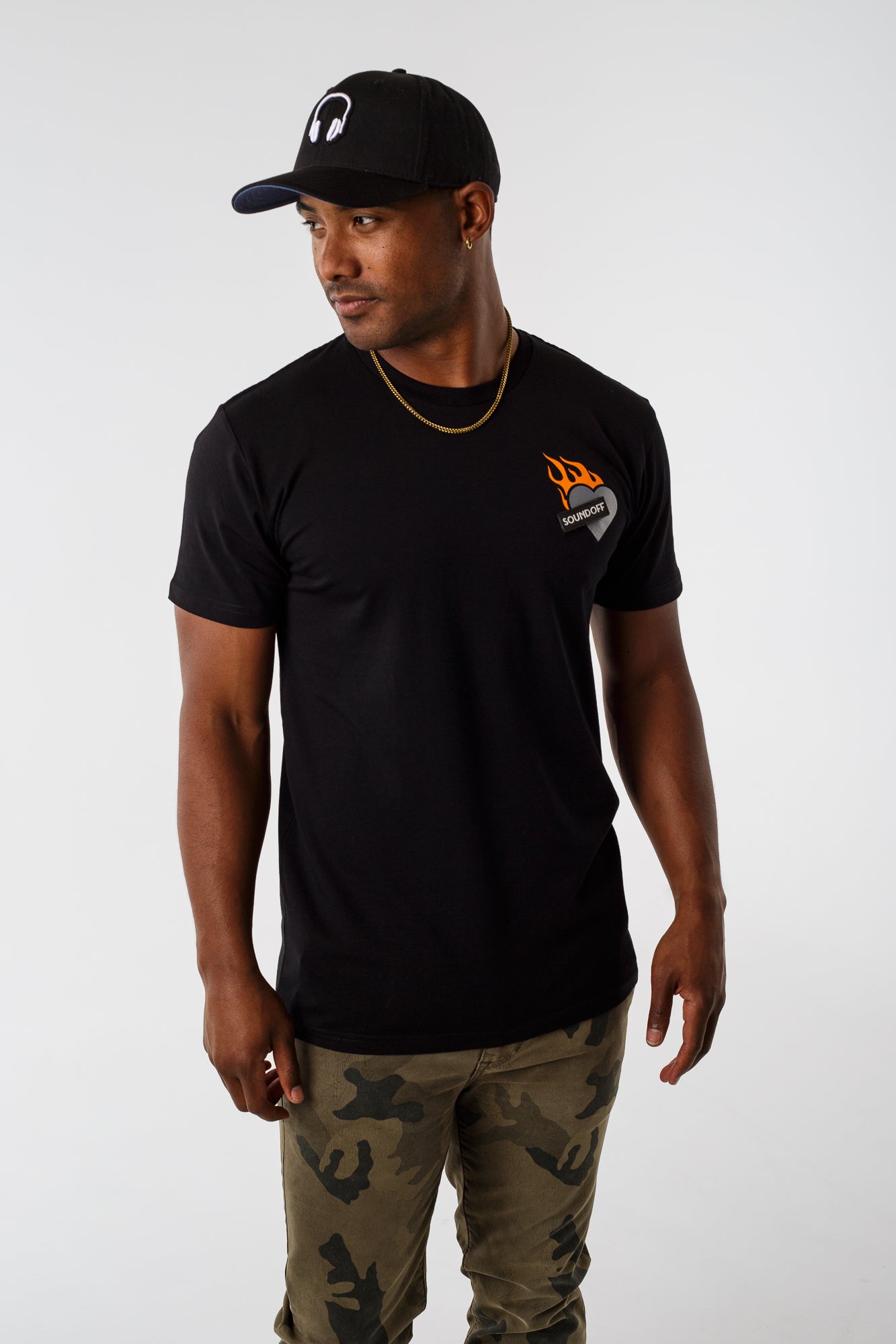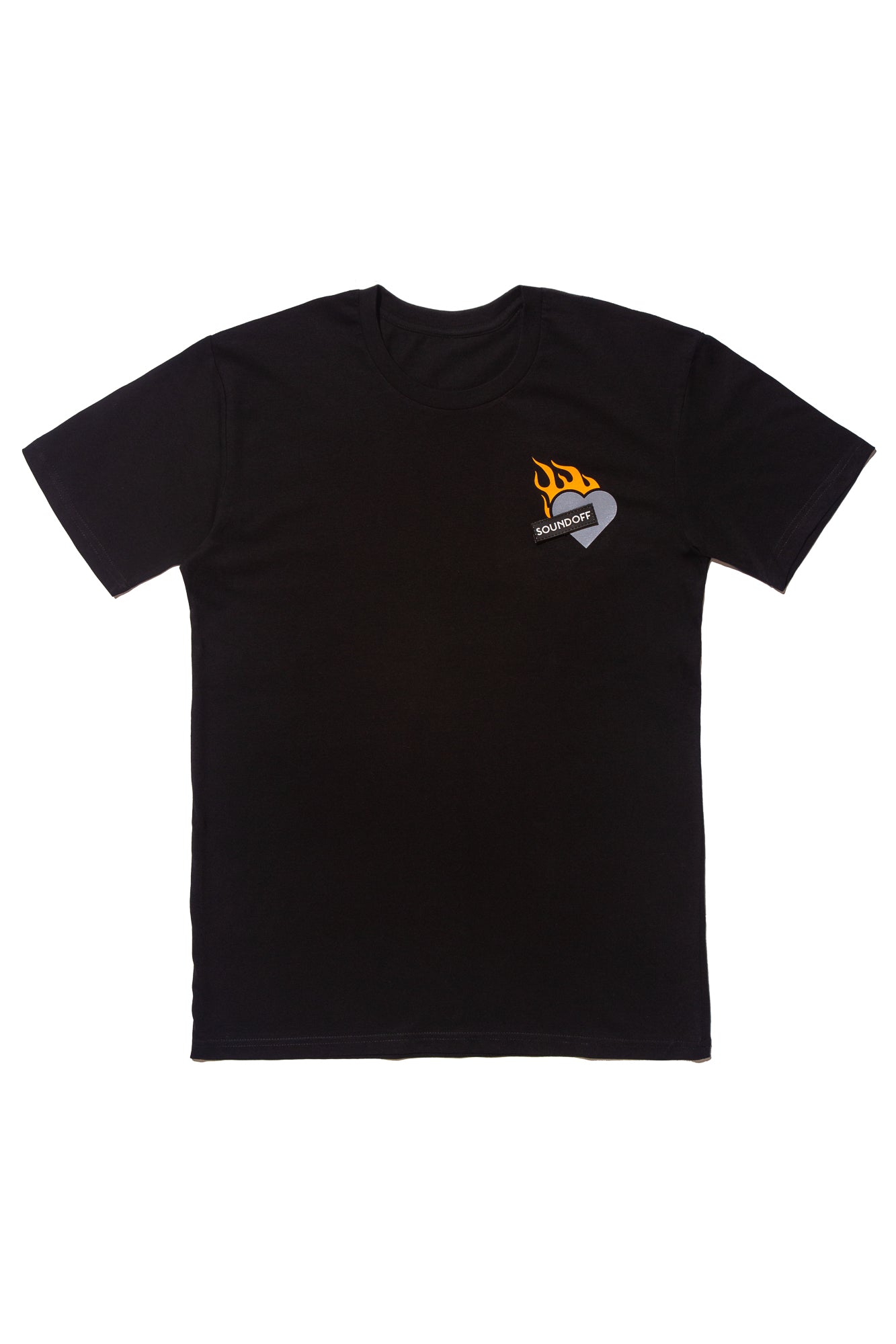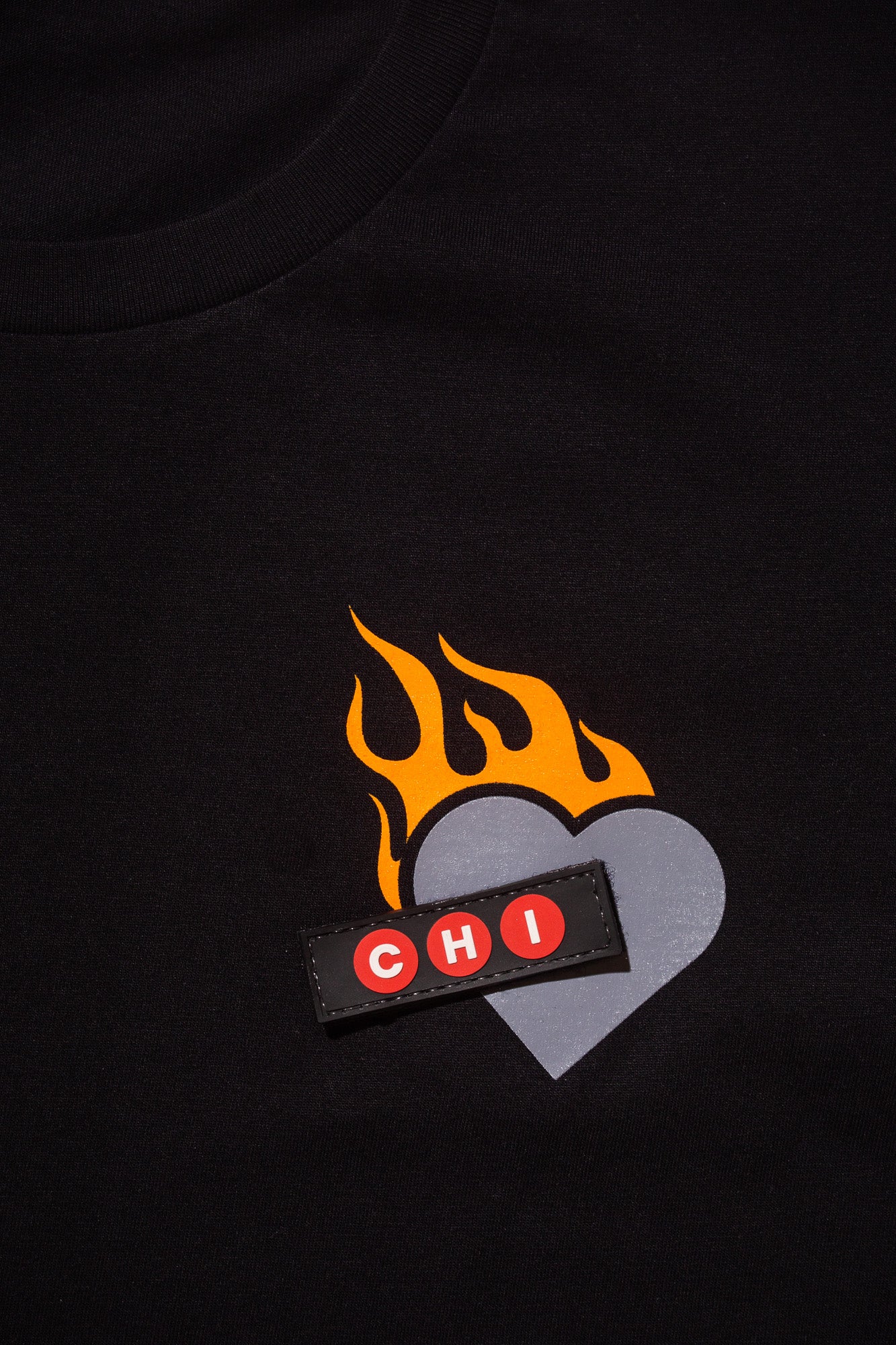 HEART ON FIRE ID PATCH CREW T-SHIRT; BLACK