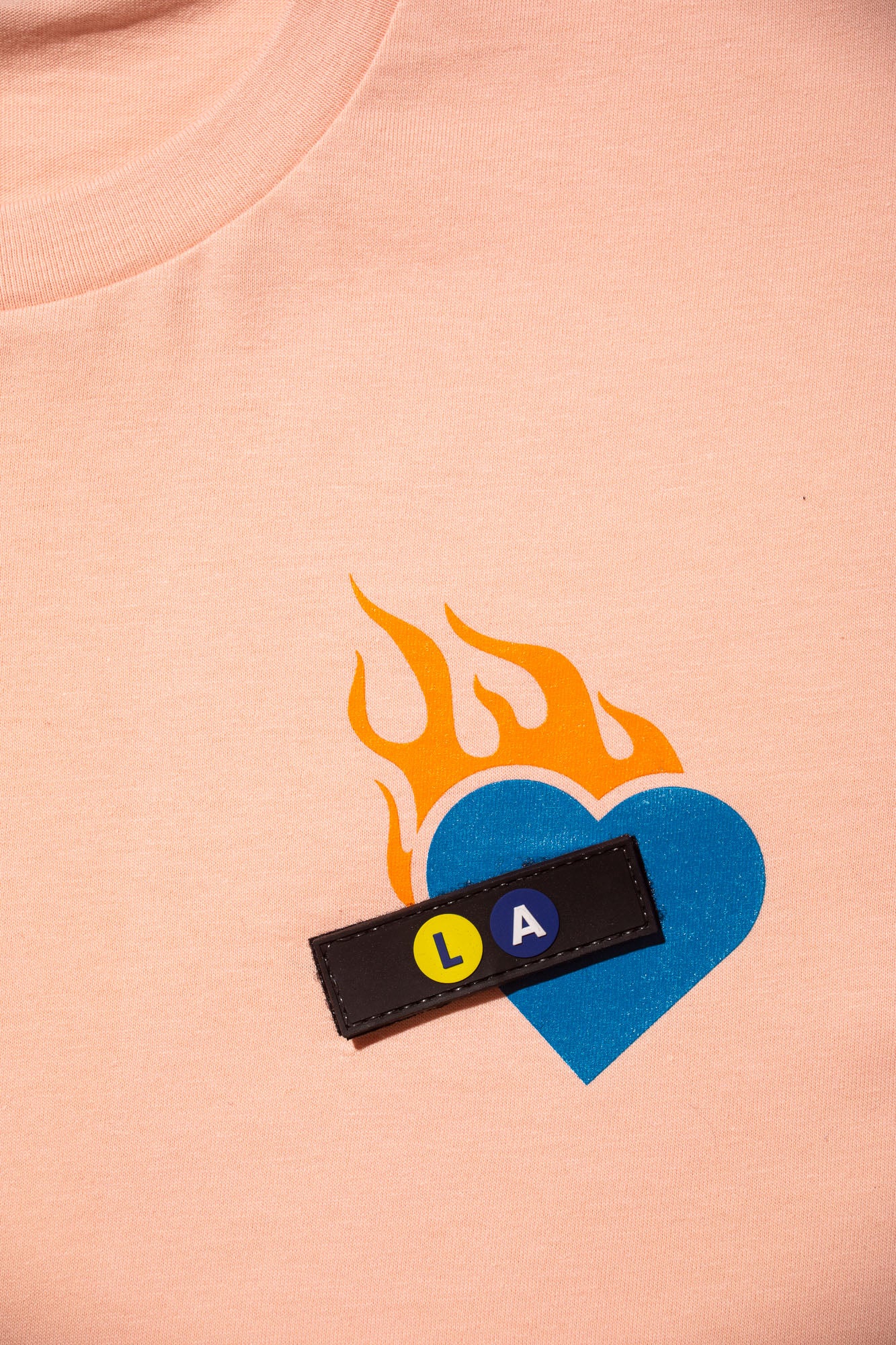 HEART ON FIRE ID PATCH CREW T-SHIRT; PALE PINK
