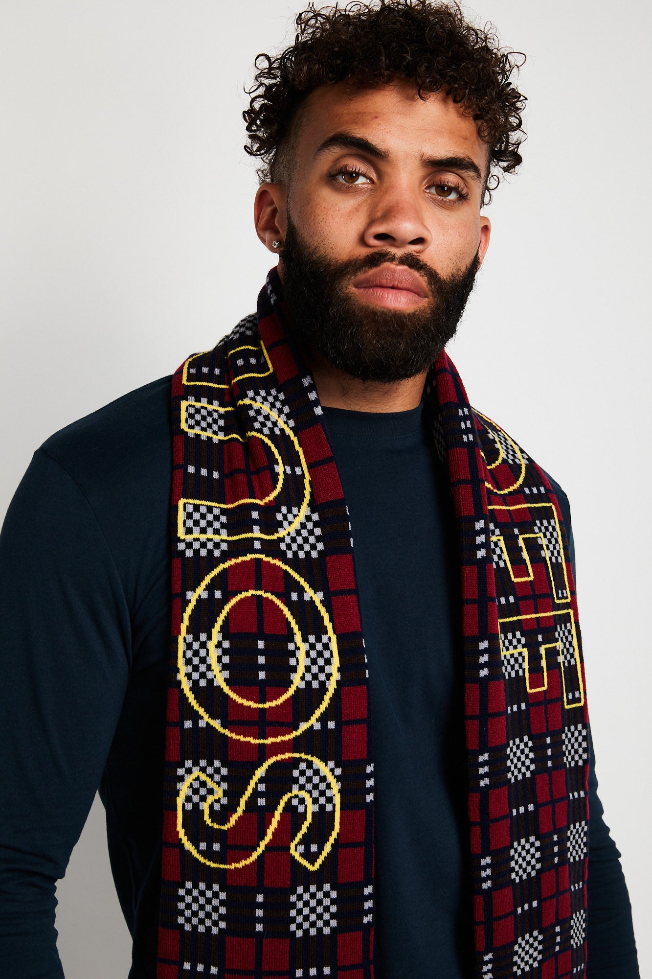 Custom woven plaid stadium scarf with fringe featuring a wish for all Americans of Life, Liberty & the Pursuit of Happiness.  SOUNDOFF is featured on the reverse side.
