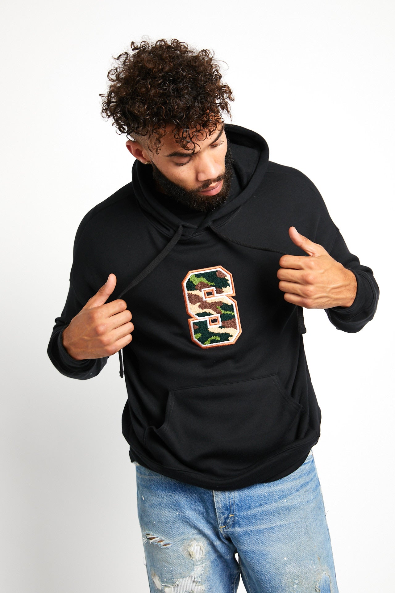 VARSITY "S" HOODIE PULLOVER; BLACK