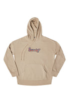 MAD PLAID SCRIPT SOUNDOFF DROP SHOULDER HOODIE; TAN