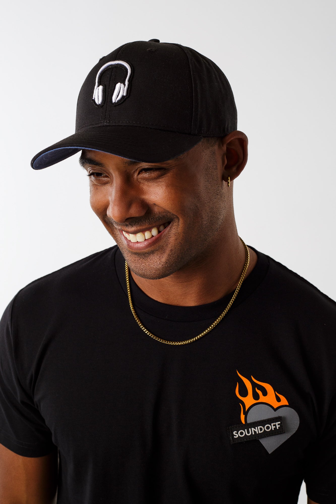 BLACK/DUSK ORGANIC CANVAS SNAPBACK; WHITE HEADPHONES